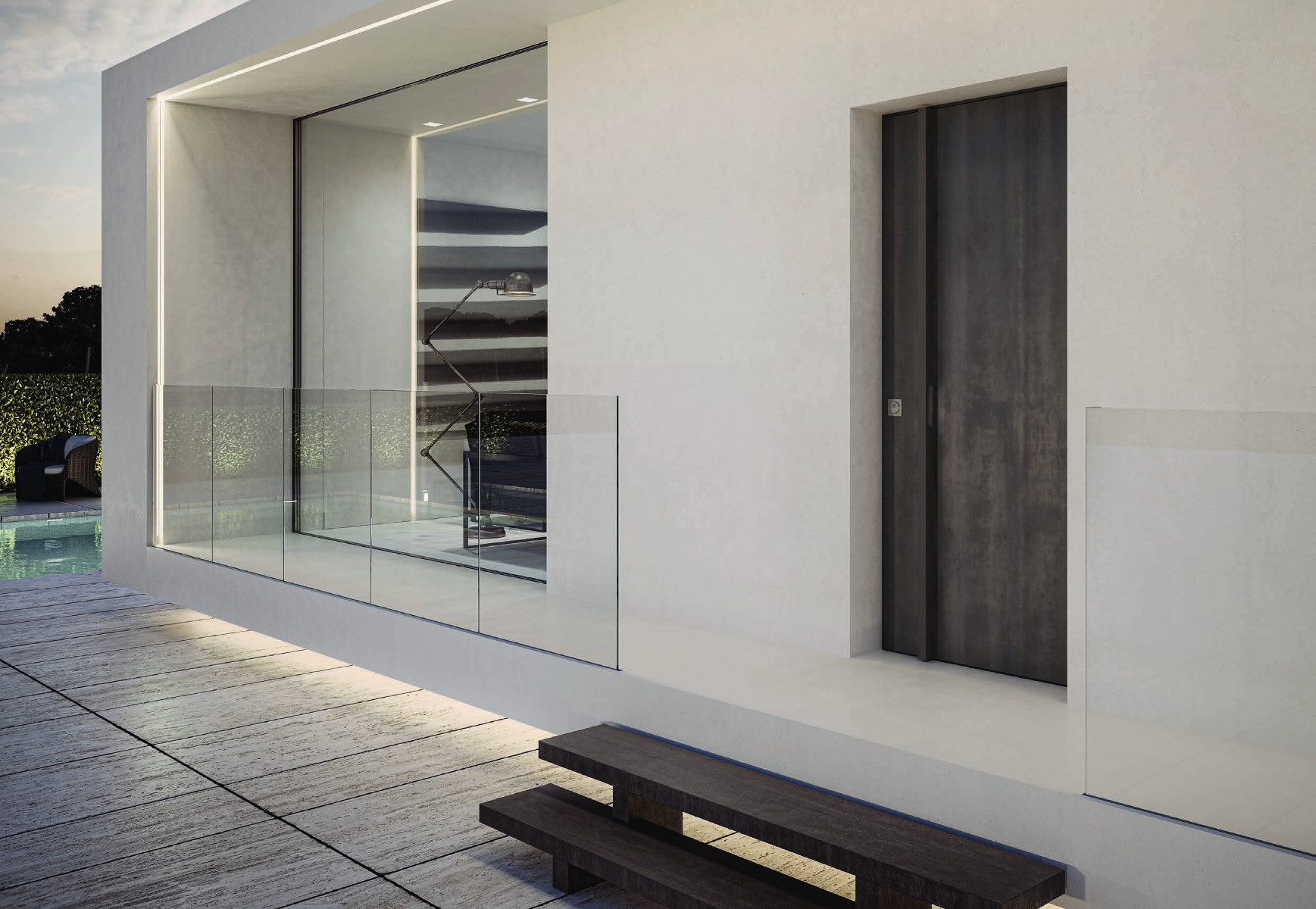 Perfectamente coplanar con la jamba y la pared, Maxima asocia la pureza de la superficie a …